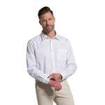 145 gsm – 4.3 oz./yd² – 7.1 oz./lin. yd 65% polyester, 35% cotton twill with PFAS free easy-care wrinkle resistant and stain release finish. 2-piece point collar. Button front placket with matching buttons. Adjustable button closure on sleeve cuff. Back shoulder yoke. Left-chest pocket on men’s style. Men’s style has knife pleats at back shoulders for greater mobility. Tapered waist on ladies’ style.